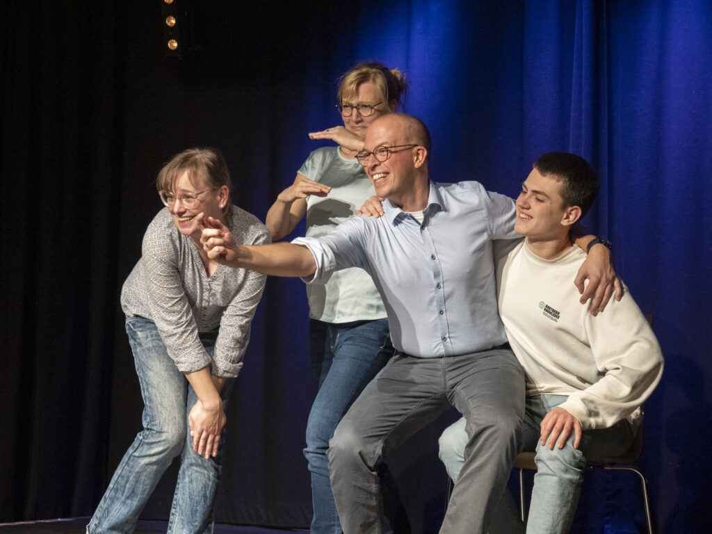 Hier bringen die einzelnen Kurse auf die Bühne des Improtheaters, was sie sich gemeinsam erarbeitet haben und freuen sich über die Unterstützung eines tollen Publikums